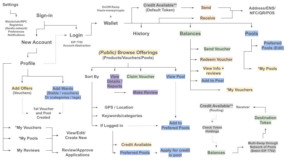 Note that we will still support the https://Sarafu.Network dApp - which has been a testing ground for many of these flows and functions and is in use across the world. The problem with the dApp is using existing wallets like Valora, Meta Mask, Rabby or other wallets makes the system incredibly hard for many users and doesn’t have the native features our community needs.